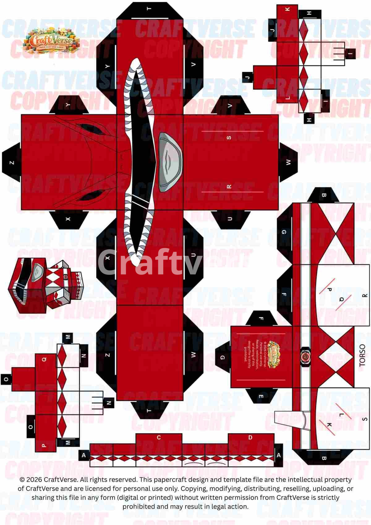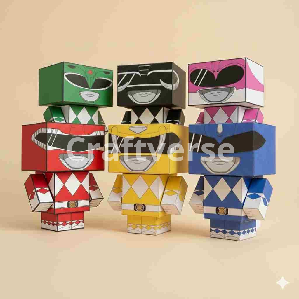 Bring the legendary team together with this complete 3D Power Rangers papercraft collection. Each ranger is designed with bold colors, accurate costume shapes, and strong structure for an eye-catching display model.